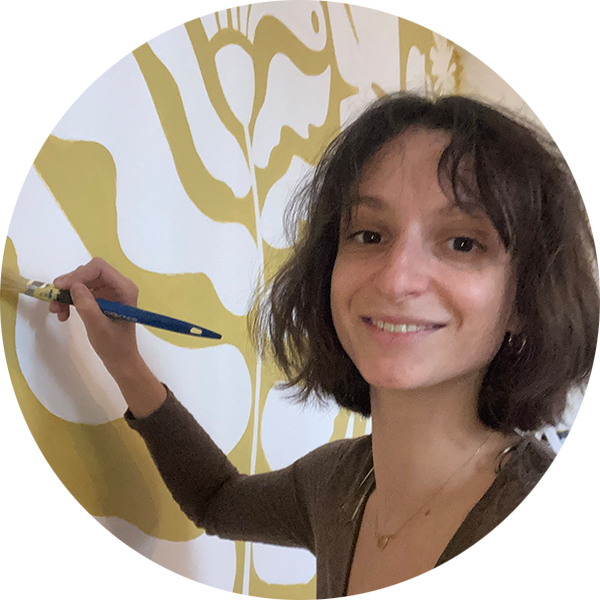 J’aime particulièrement les formes géométriques, les compositions incluant des végétaux, des fruits, des paysages, dans un style moderne, coloré, graphique.