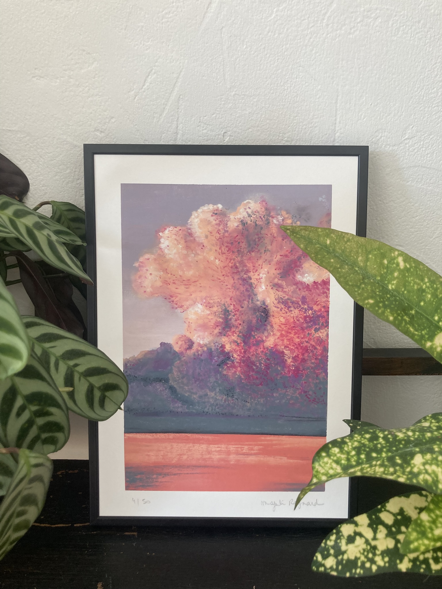 Entre le premier coup de pinceau de cette collection et aujourd’hui, ma vie a changé. J’ai laissé derrière moi ma carrière d’ingénieure chimiste dans l’industrie des matériaux de construction pour me réinventer. Aujourd’hui, je suis graphiste et je réalise également des fresques murales peintes à la main. Ces explorations artistiques, que ce soit sur toile ou sur mur, me permettent de jouer avec les contrastes et les lumières, et d’enrichir constamment ma pratique.